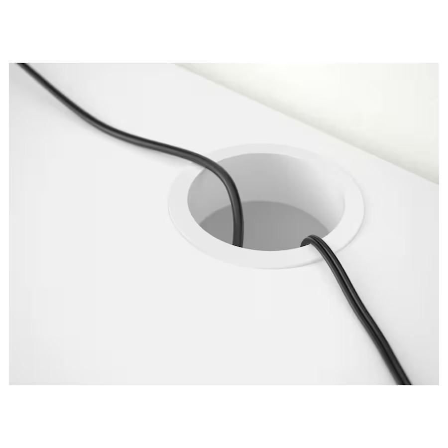 Có lỗ hở ở phía sau bàn giúp giấu dây cáp một cách gọn gàng. Bạn có thể giữ các ổ cắm và dây cáp ngoài tầm nhìn, nhưng vẫn dễ dàng tiếp cận chúng khi cần. Bàn MICKE còn được trang bị ngăn kéo chắc chắn, giúp bạn lưu trữ đồ dùng một cách tiện lợi. Ngăn kéo không bị kéo ra quá xa, giữ an toàn cho bạn và đồ vật bên trong.