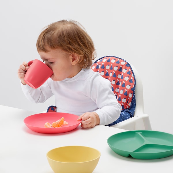 Màu sắc và thân thiện với tay cầm. Hoàn hảo cho trẻ nhỏ có xu hướng làm rơi, đổ và lộn xộn vì háo hức muốn học cách tự ăn.Được làm bằng nhựa tái tạo, một lựa chọn bền vững hơn nhựa từ các nguồn như dầu hóa thạch.Có thể xếp chồng lên nhau để tiết kiệm diện tích khi không sử dụng.Vì loạt đĩa, bát và các vật dụng ăn uống khác của HEROISK và TALRIKA được thiết kế cùng nhau, bạn có thể đặt bàn ăn với nhiều tùy chọn màu sắc và chức năng hơn - hoặc chỉ cần xếp chồng và cất chúng lại với nhau.Vui lòng tham khảo nhãn bao bì để biết nước xuất xứ.Dành cho lứa tuổi từ 18 tháng.Có thể kết hợp với các sản phẩm khác trong dòng HEROISK.