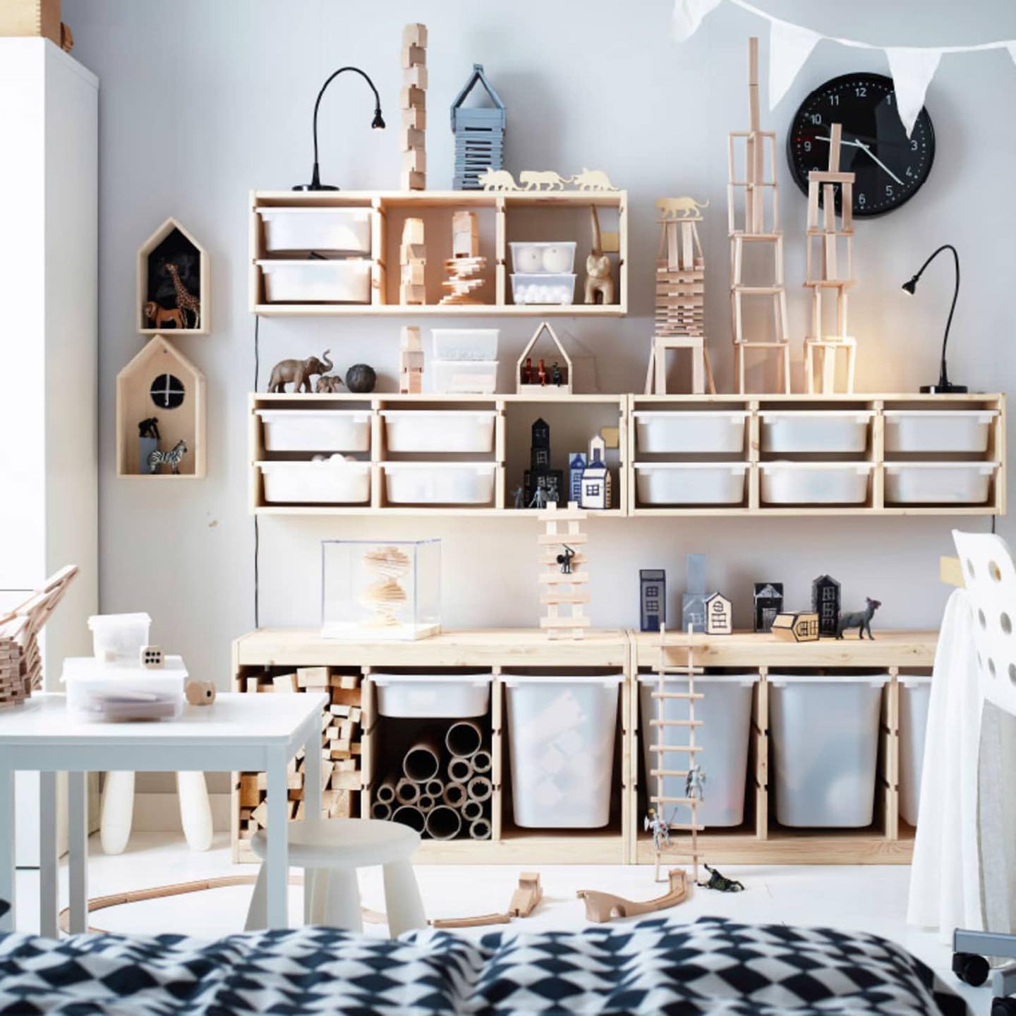 Bạn có thể dễ dàng biến khung thông rộng, màu trắng nhẹ nhàng này thành một giải pháp lưu trữ thiết thực bằng cách hoàn thành với các hộp nhựa nhiều màu sắc và hộp lưới mát mẻ.