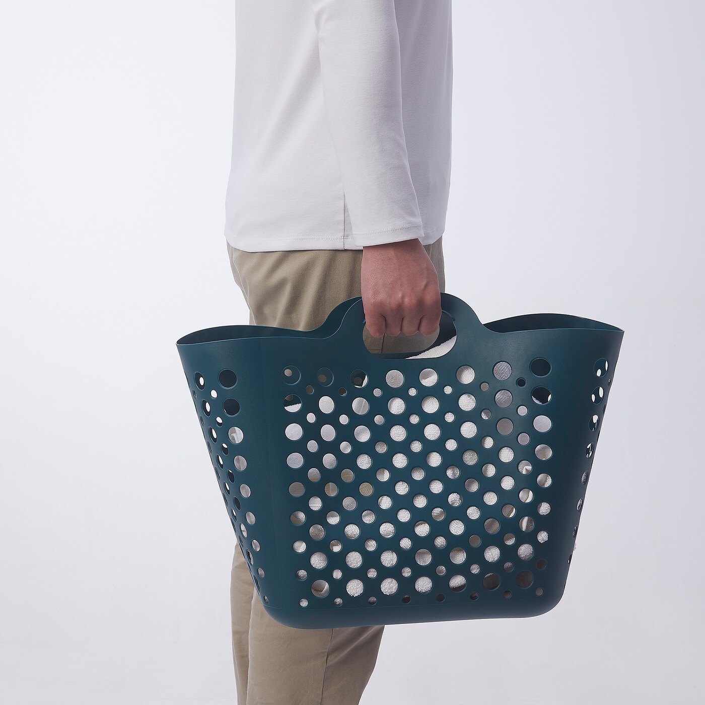 Dễ dàng mang theo bằng một tay vì toàn bộ giỏ giặt được làm bằng nhựa dẻo.